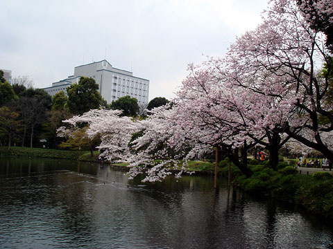庭園の中心にある池の周りをぐるっと歩いて、池を囲むように咲くソメイヨシノも観賞しました。