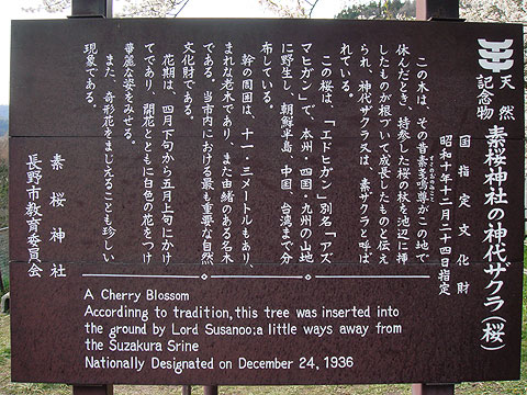 素桜神社の境内にある樹齢1200年、エドヒガンザクラの巨木で国指定天然記念物です。