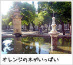 入り口の門の先には緑一杯の「オレンジの中庭」がありました。幅約130m、奥行き60mの敷地にオレンジの木がいっぱいに植えられているそうです。