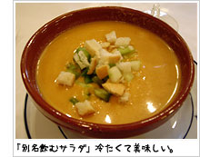 スペイン南部アンダルシア地方の代表的な料理で、加熱しないで作る酸味の効いた冷たい野菜スープの一種です。
